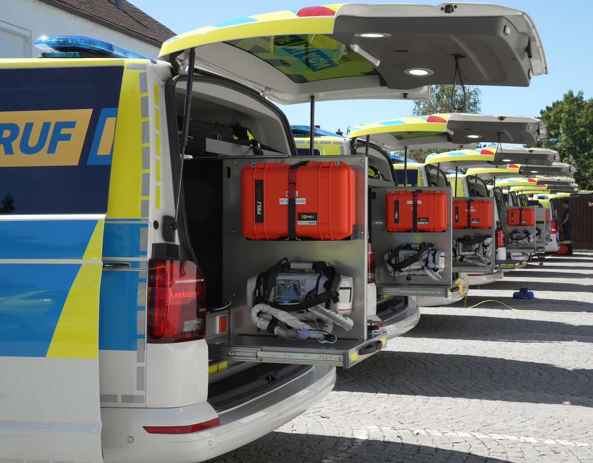 Auf Basis der analysierten Anforderungen fiel die Entscheidung für den künftigen Fuhrpark auf Transporter-Modelle der Hersteller Mercedes-Benz und Volkswagen. Mit dem Fokus auf die Testung von Elektromobilität im präklinischen Setting wurde damals eines der ersten vollelektrischen Notarzteinsatzfahrzeuge vom Typ Mercedes-Benz eVito (Details eVito siehe Website Fa. BINZ) angeschafft.